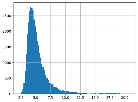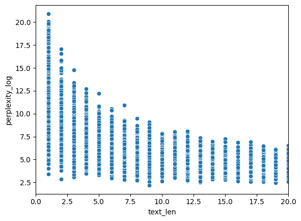 В качестве базовой ЯМ у нас была ai-forever/rugpt3small_based_on_gpt2, потому что с ней просто работать в плане запуска на имеющемся железе. Взяли эту модель, наши переводы, прогнали всё и получили перплексию. Быстро поняли, что лучше работать с логарифмированной перплексией, потому что для коротких текстов ее значения иногда долетают до Венеры. В итоге получилось у нас вот такое общее распределение и, далее, распределение, зависящее от длины текста.